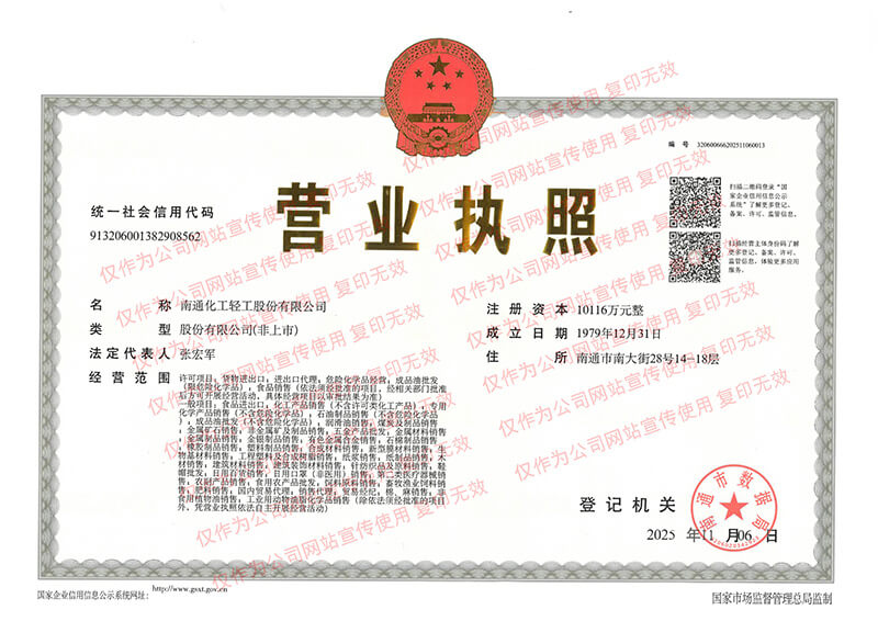 南通化工輕工股份有限公司成立于1963年7月1日, 1997年改制為股份有限公司,注冊(cè)資本10116萬(wàn)元。公司自1963年成立以來(lái),始終堅(jiān)持“誠(chéng)信為本”的商信文化,向海內(nèi)外廣大供應(yīng)商按時(shí)足額履行付款、向廣大客戶按時(shí)按質(zhì)按量按價(jià)履行供貨、向金融機(jī)構(gòu)按時(shí)足額履行還款等,在商界享有很高聲譽(yù)。